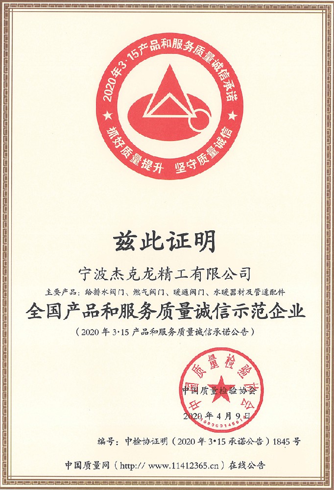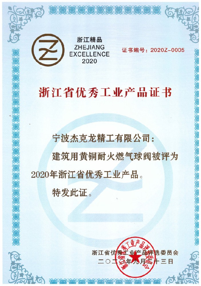 2018年11月8日,杰克龍精工公司正式獲得由浙江制造國際認證聯盟和杭州漢德質量認證服務有限公司聯合簽發的《浙江制造認證證書》。